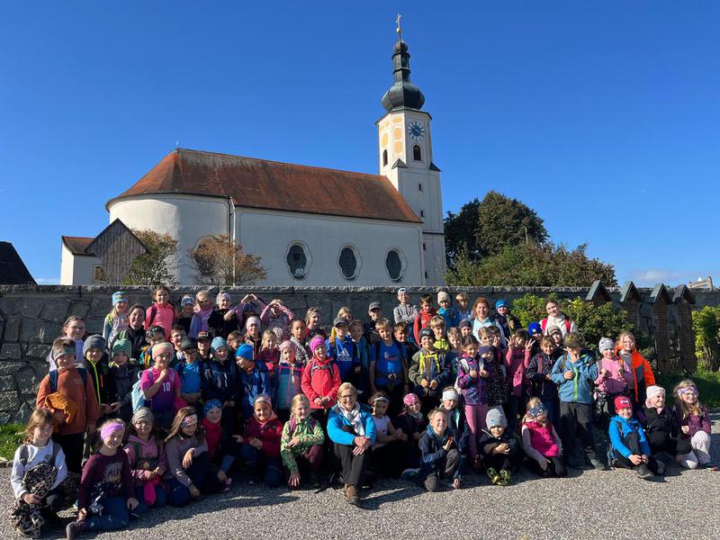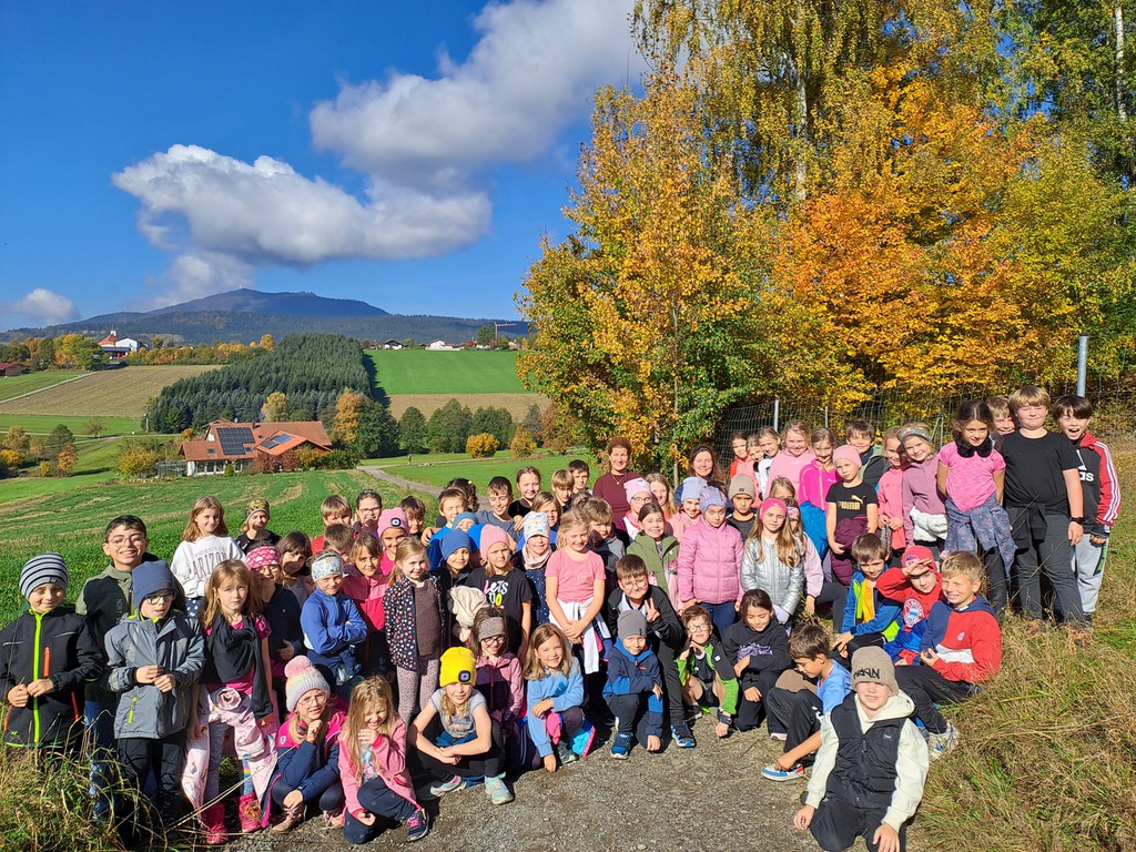 Von der Schule aus führte unser Weg zunächst zum Seepark, durch das Moor, weiter in Richtung Gut Kless und schließlich – nach einem stetigen Anstieg – zum Einödhof Trailling. Nach einem kurzen Stück